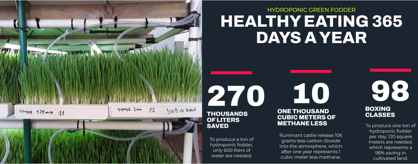 The use of hydroponic fodder in animal feed contributes to reducing methane emissions, as its high digestibility and optimized nutritional profile allow for more efficient ruminal fermentation. As it is a feed that is easier to break down in the rumen, sheep and other ruminants produce less methane during digestion compared to conventional fodder.