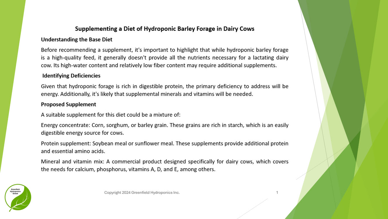 at our expense to your farm and operate the plant that produces fodder daily